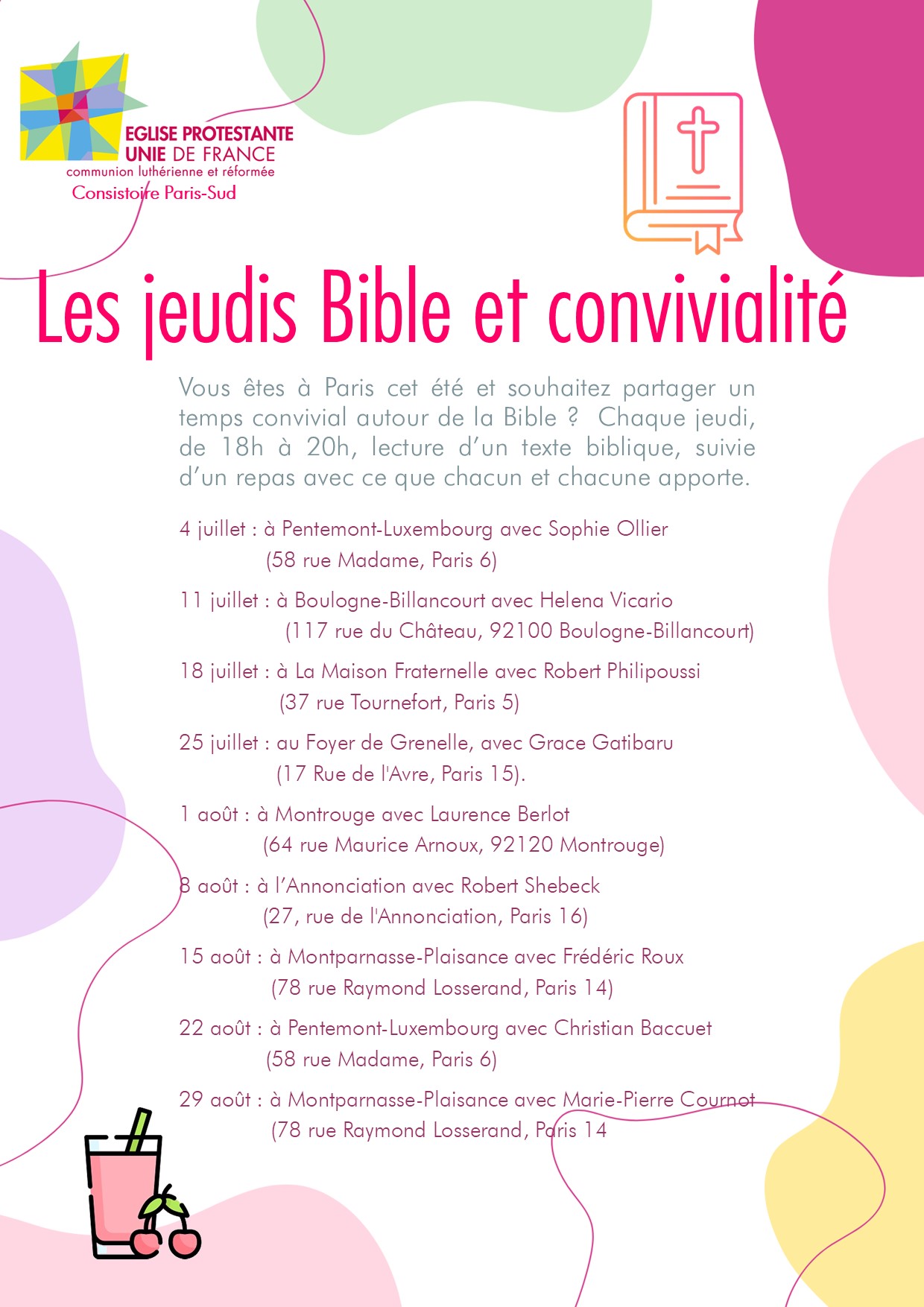 Vous êtes à Paris cet été et vous souhaitez partager un temps convivial autour de la Bible ?