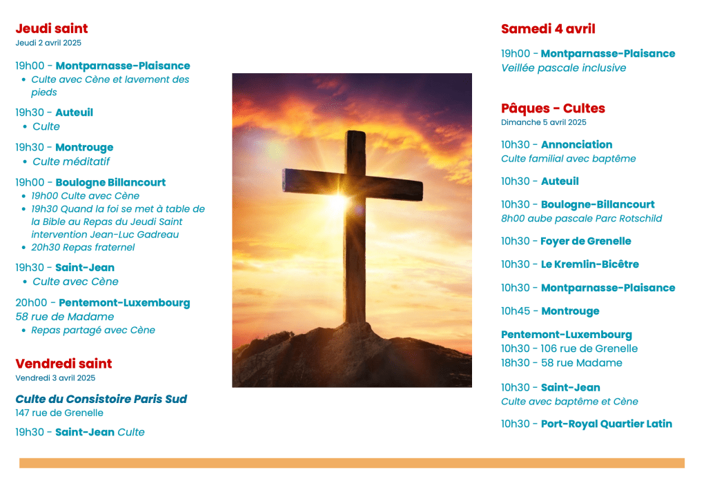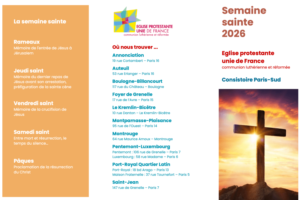 29 mars 2026 Église protestante unie de Montparnasse-Plaisance Semaine Sainte du Consistoire Paris-Sud 2026